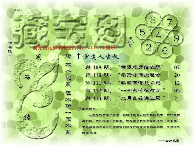 109期:八肖【马蛇鸡虎鼠龙狗】开:猪07中